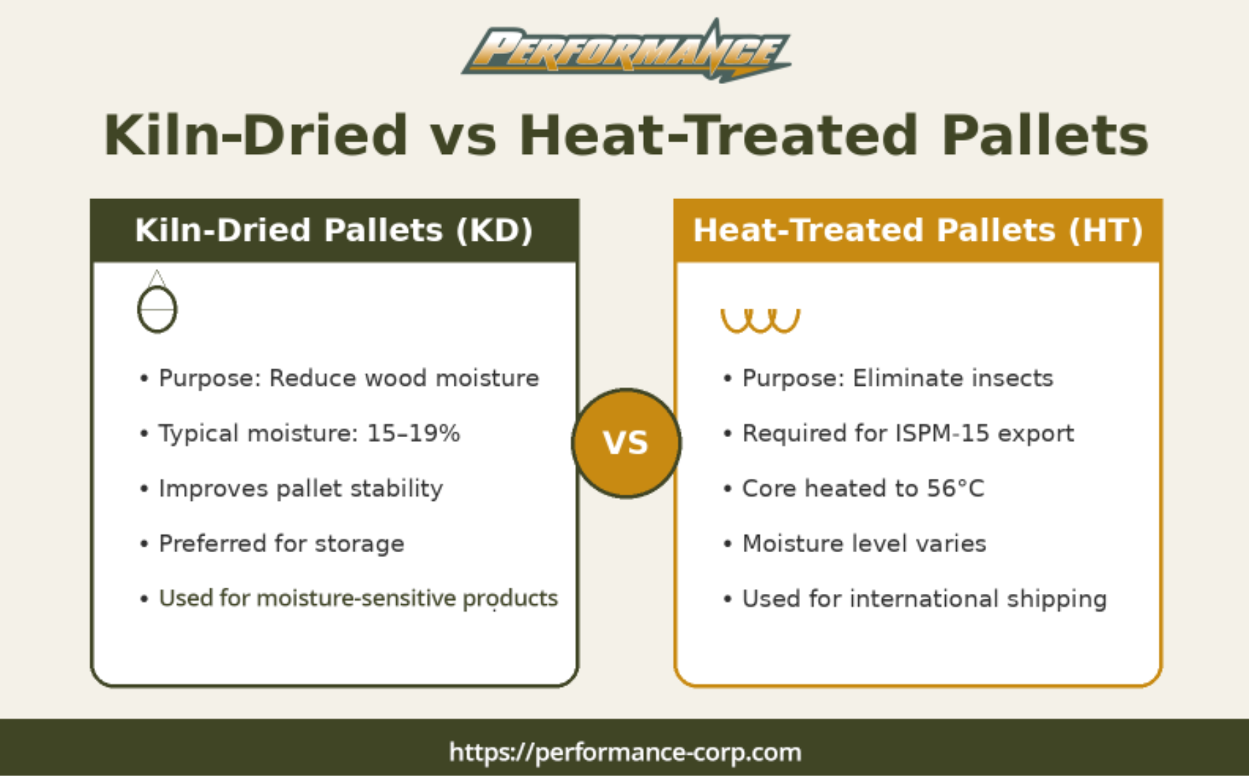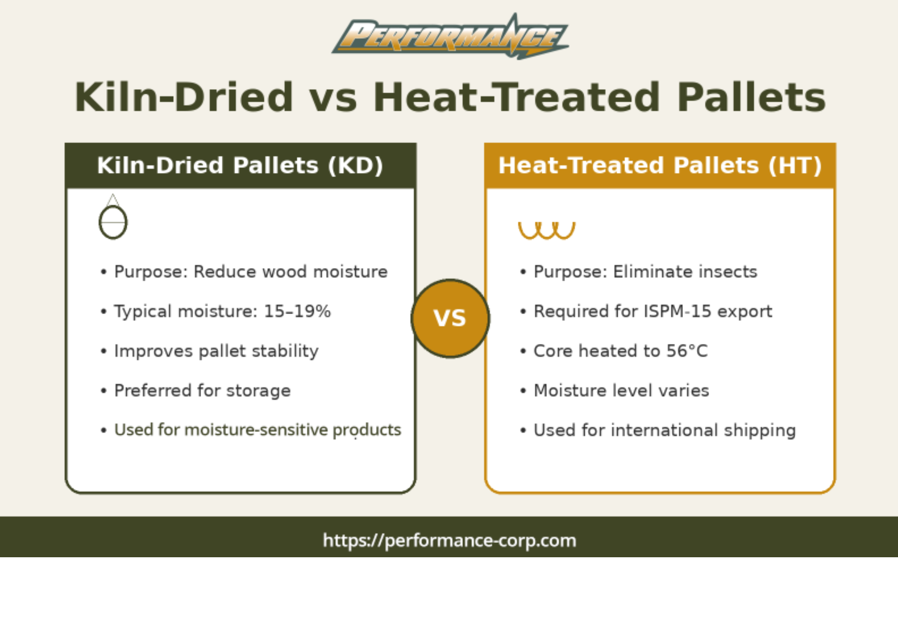 Choosing the right pallet treatment can improve product protection, reduce supply chain disruptions, and ensure regulatory compliance. Performance Pallet manufactures high-quality wood pallets designed for durability, moisture control, and reliable shipping performance. Call us today to discuss your pallet requirements.